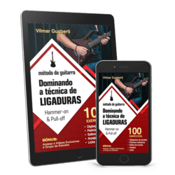 É uma apostila com mais de 51 páginas, contendo 100 exercícios de Ligaduras (hammer-on & pull-off) organizados em uma sequência lógica, adicionando e resolvendo um desafio por vez, para você desenvolver fluência, velocidade, e também expandir o seu vocabulário com padrões de escalas, arpejos e frases.